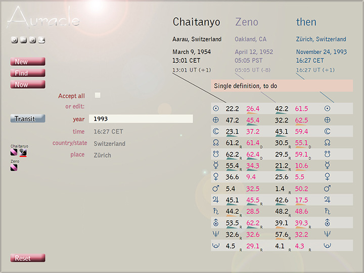 When you generate a composite transit, Auracle automatically adds a transit and a transit composite button to the first person's tab. This makes it easy to compare the two individuals, their composite and their transit.