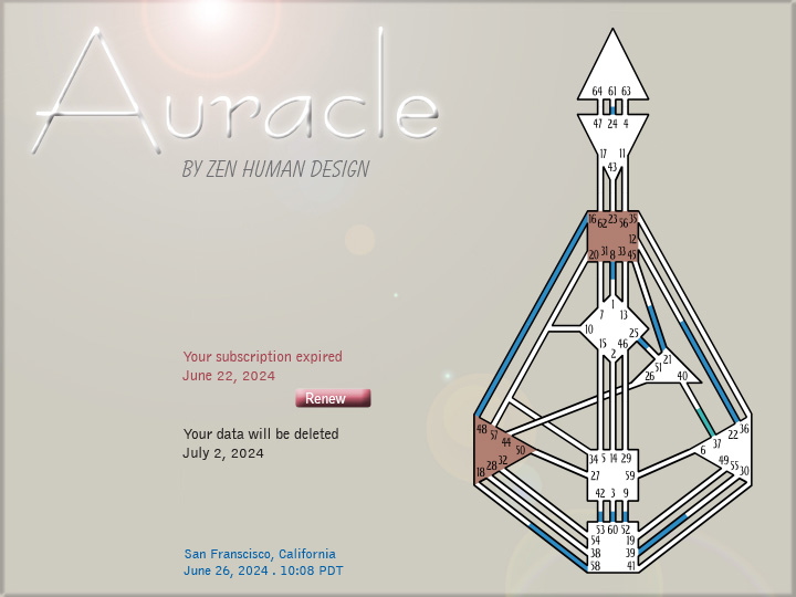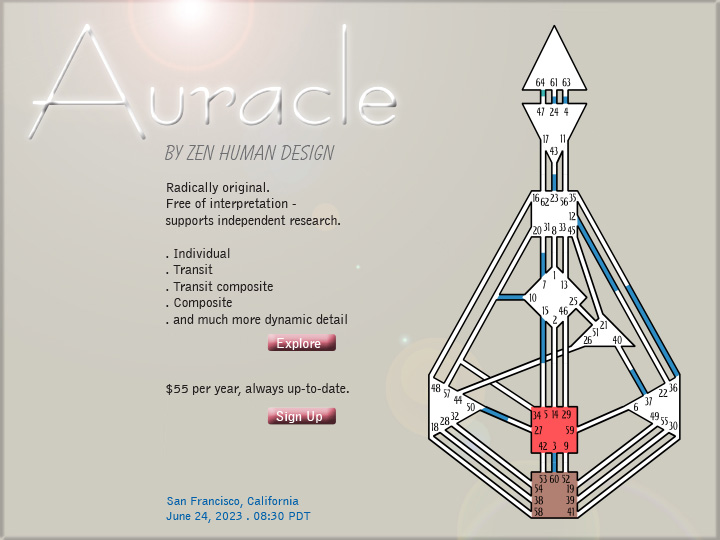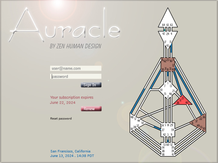 You are taken to the New panel where you enter your own birth data. When complete, you'll find yourself on the Individual panel displaying your own design and Auracle is unlocked in all its glory.